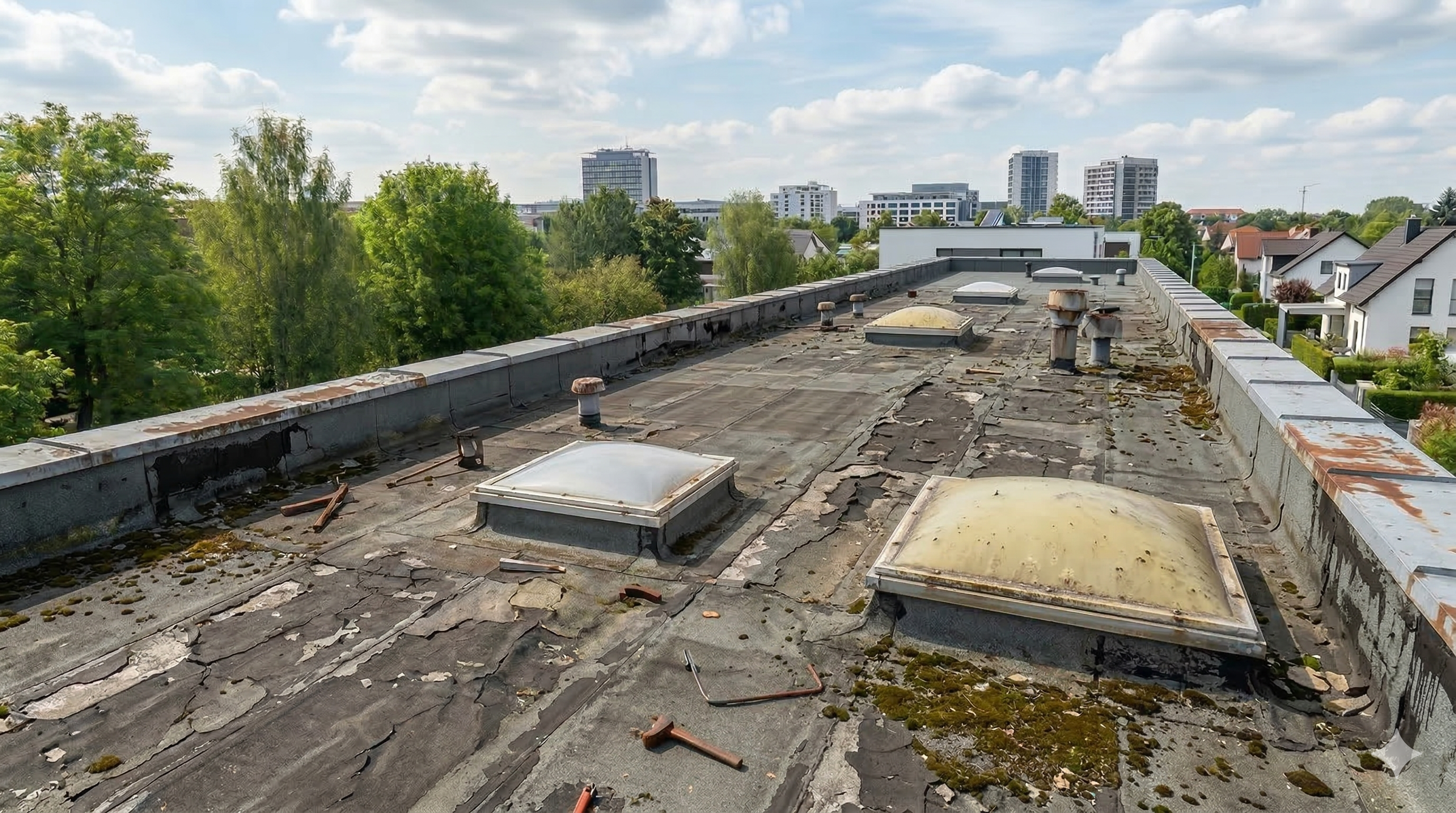 Nagy felületű tetők professzionális védelme és karbantartása ipari partnerek részére.
